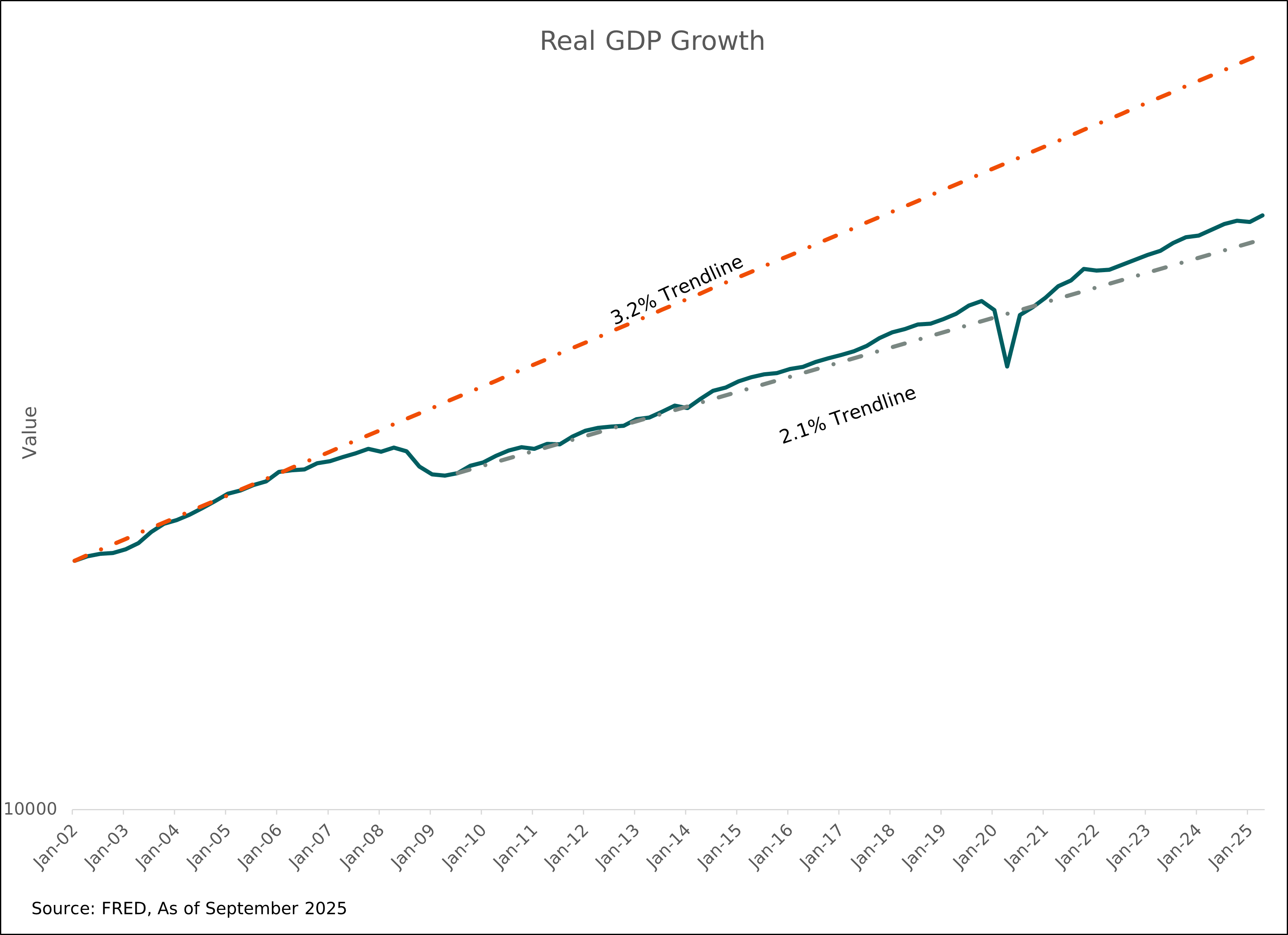 With trend growth now closer to 2.0%, the economy is less able to absorb high real rates without stalling. At the same time, the neutral R-star (r*), the rate that is neither too loose nor too tight is closer to 0.5%–1.0% in real terms. That means a 1.2% real rate, while modest in absolute terms, sits above neutral today and therefore applies more restraint than the same level would have in prior decades.